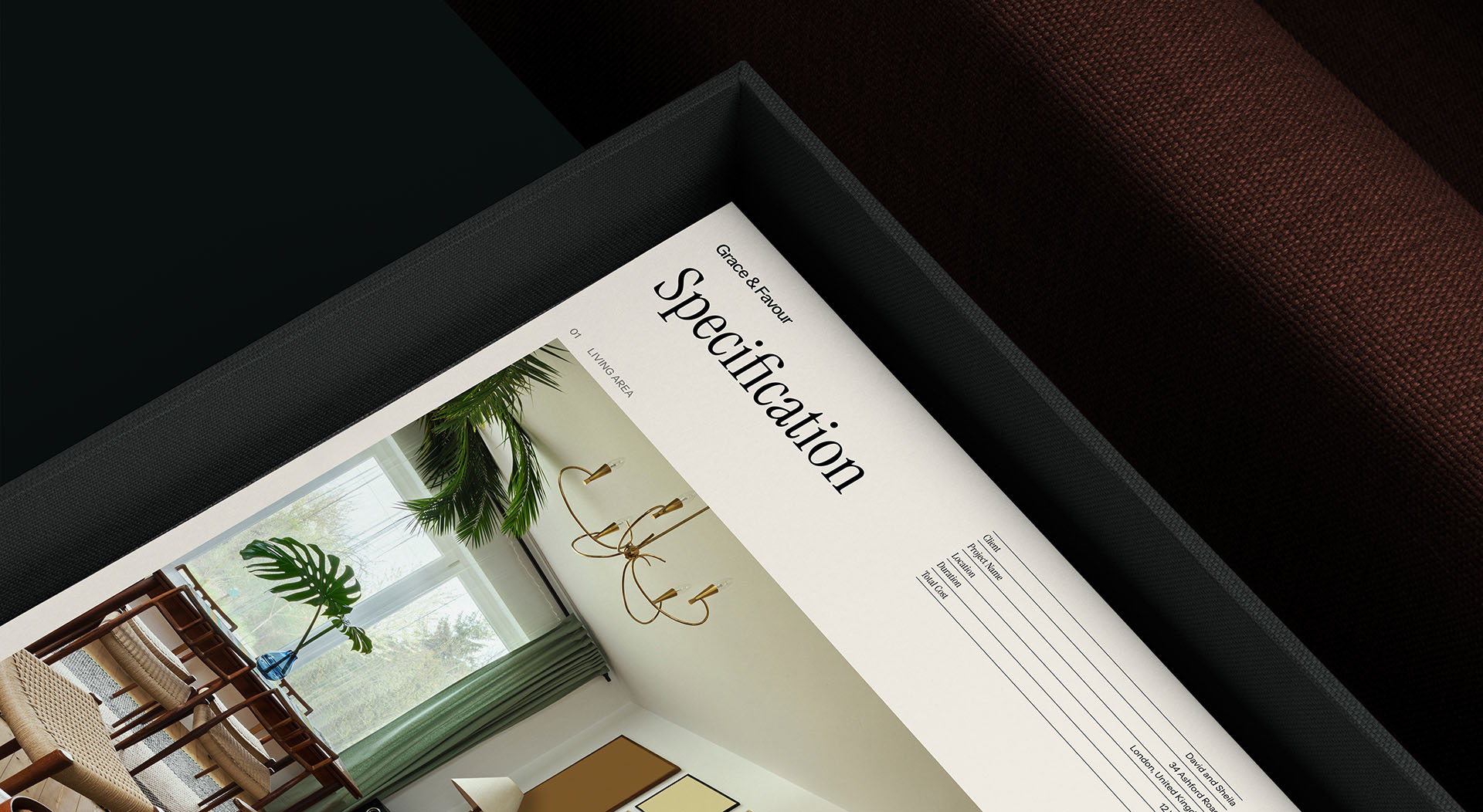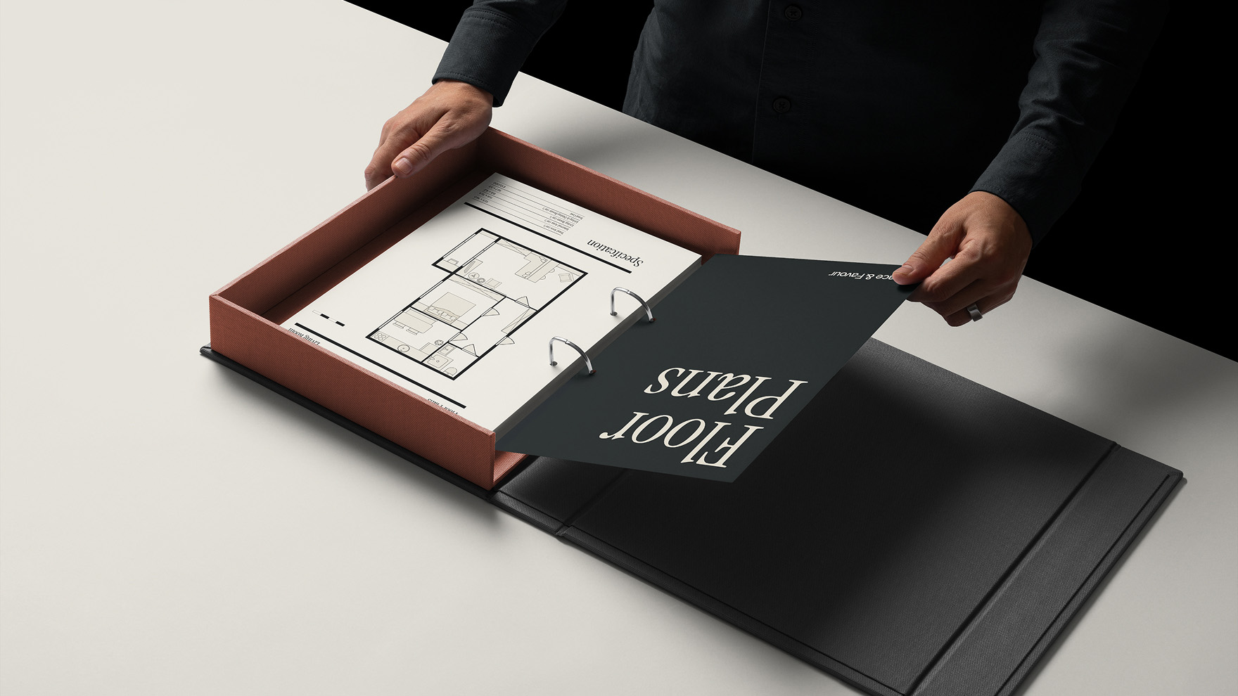 The rest of the identity is all built around restraint whole harnessing traditional principles of interior design. G&F is identified by just three signature colours: black, off-white and copper. Black and off-white provide a neutral foundation, while the metallic copper accent adds a subtle touch of class.