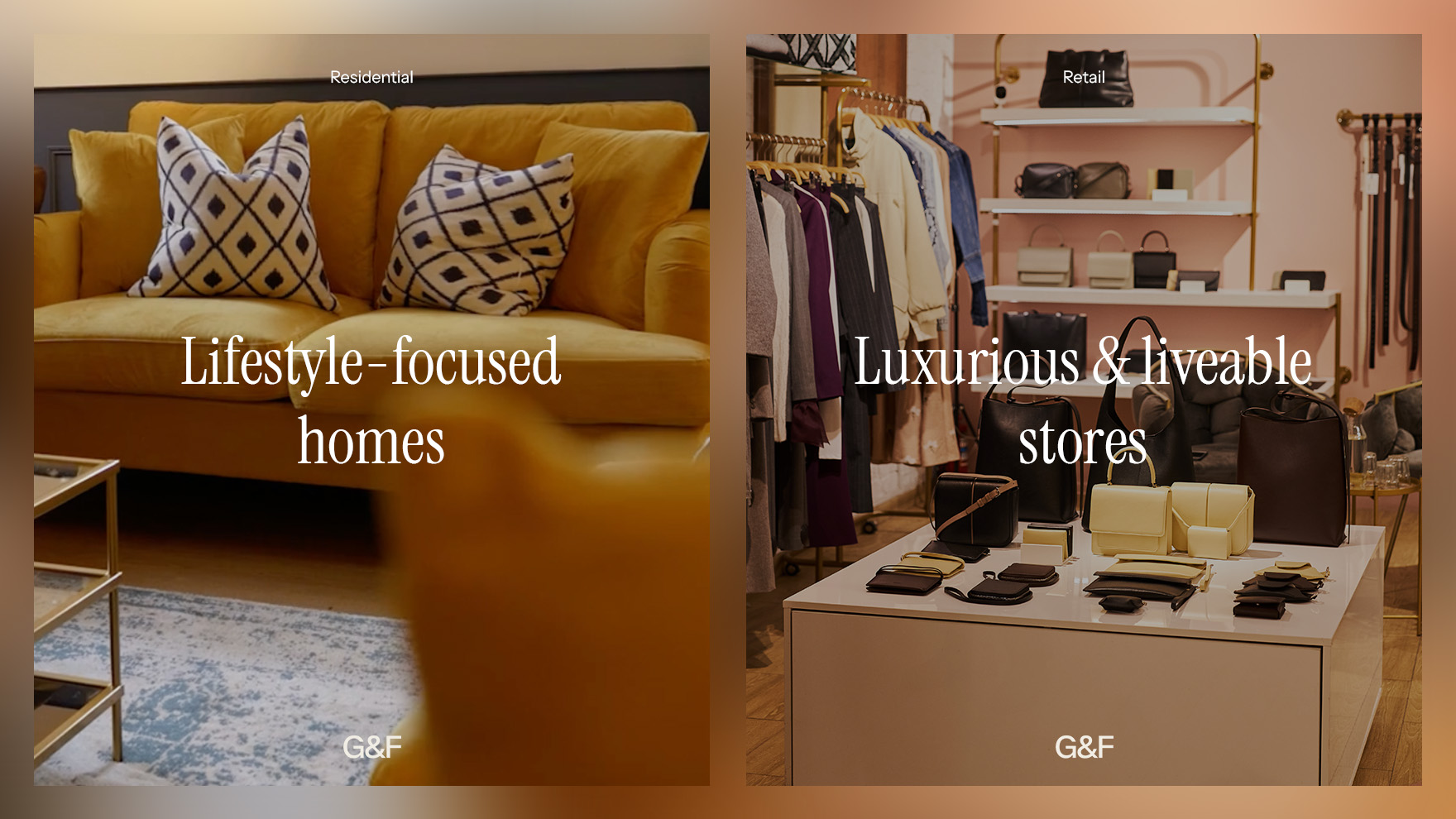 Communicating what G&F do, how they do it and how they achieve clients goals was always the critical mission of the project. We started with brand, but delivering online was always the major objective. G&F are not just interior designers and they are not your typical bricks and sledgehammer construction team, either. We had to get the perfect pitch.